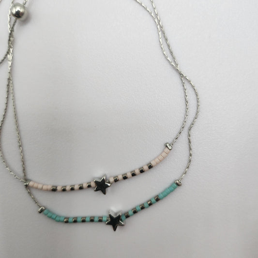 Pulseira Estrelarde Aço Inox - Azul Claro e Bege ajustável