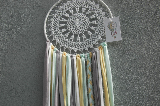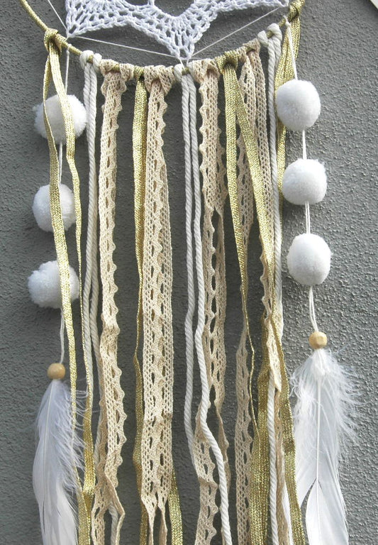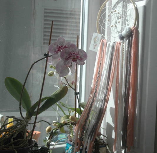 Descubra a serenidade com o nosso Caça Sonhos artesanal, uma peça decorativa entrelaçando tradição e beleza. Feito com algodão suave e contas delicadas, promete paz e energias positivas para o seu lar.">